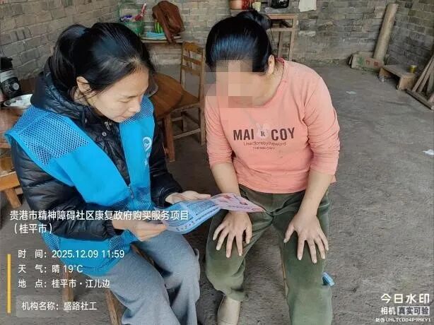 贵港市精神障碍社区康复中心(桂平市)将专业康复服务送到患者家中,围绕健康管理、社交训练、服药训练、生活技能四大模块开展上门指导。工作人员首先通过健康监测和康复评估,全面掌握患者身心状况,为其制定个性化的康复计划;在此基础上,通过陪伴沟通和互动实践,帮助患者改善社交认知、提升表达能力,逐步走出封闭状态。同时,工作人员手把手教导患者日常起居、个人护理、家务打理等生活技能,并详细讲解用药知识、指导科学服药,确保治疗安全有效。