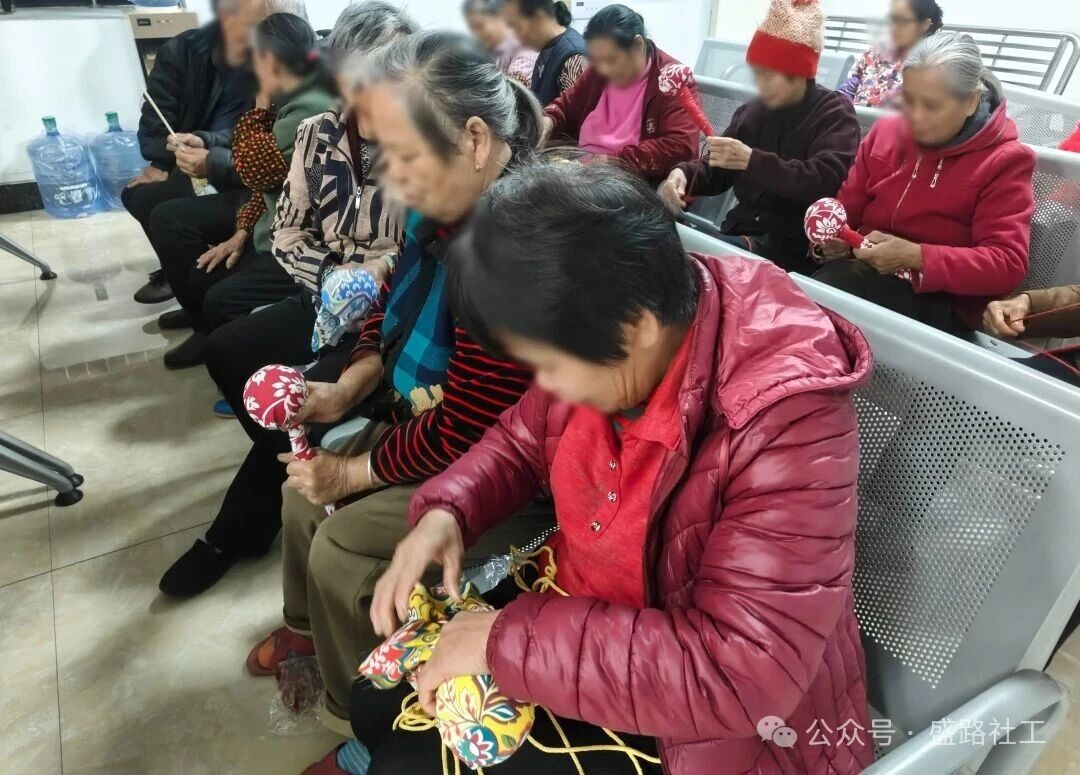 紧接着的“非遗手作——“养生艾草锤”制作环节,则让共融理念落到实处。在主持人与志愿者的引导下,大家分组协作,从填充艾草、包裹布料到固定手柄,每一步都需要耐心与互助。过程中,穿针引线不熟练的居民得到邻座康复者的帮助,手法生疏的参与者在社工“手把手”指导下渐入佳境。现场形成了浓厚的“邻里互教、成员互学”氛围,艾草的清香与互助的暖意交织弥漫。