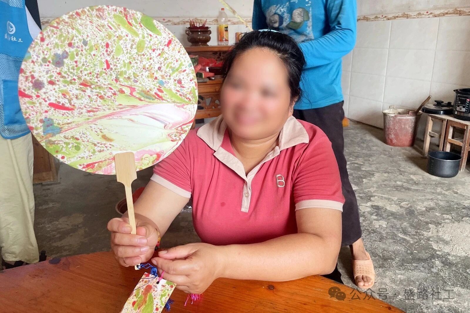 第二节“接纳·‘扇’韵千年、‘漆’彩纷呈”把非遗体验与社交训练巧妙融合。在社工讲解漆扇历史、示范渐变晕染技巧后,组员围绕“夏日风情”等主题分组创作。40分钟的制作过程中,大家分工协作、互相帮助,漆料烘干间隙的“你画我猜”小游戏更让现场笑声不断。最终,小组代表上台展示制作完成的漆扇,介绍创作思路、分工情况以及制作过程中印象深刻的故事或互动场景,这一幕幕和谐的场景成为组员自信与友谊的见证。